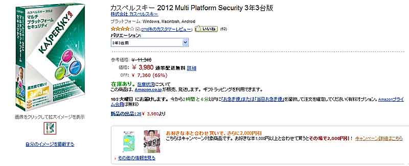 65%オフに2000円引きとは・・・アマゾン恐るべし。