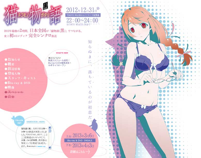 猫物語(黒) PV第1弾 Nekomonogatari kuro PV .【アニメ】「猫物語(黒)」、TOKYO MX・BS11・ニコニコ生放送で12月31日22時放送開始 史上初の3メディア完全シンクロ放送