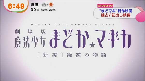 新作「劇場版魔法少女まどか☆マギカ 叛逆の物語」めざましテレビで先行公開されたPV!