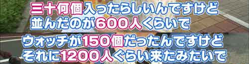 30数個のメダルに600人が並び、零式ウォッチの発売日には150個に対して1200人が行列したと言う。