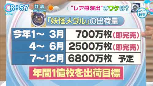 メーカー(バンダイ)は年間1億枚もの増産も予定するが今のところ完売が続く。