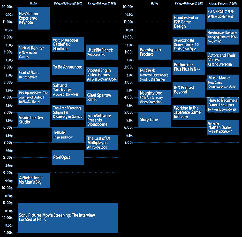 http://blog.us.playstation.com/2014/12/04/playstation-experience-panel-and-livestream-schedules/