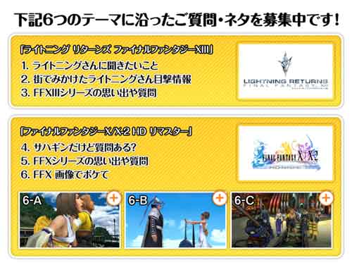 ライトニング リターンズ FFXIII/FF X/X-2 HD リマスター以下のタイトルに沿った質問を#北瀬さんでつぶやいて欲しいとの事。