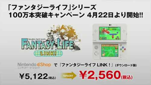 4月22日から前作の「ファンタジーライフ リンク」DL版が半額になるキャンペーンも開始。