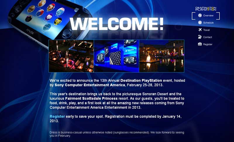 我々は、ソニーコンピューターエンタテインメント・アメリカが主催する第13回デスティネーションプレイステーションのイベントでは、2月25-28、2013を発表する事に興奮している。