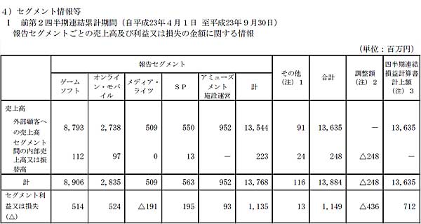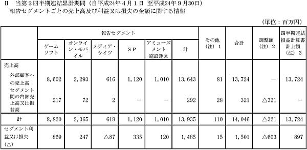 ゲームソフト事業売上高 88億20百万円セグメント利益 8億69百万円