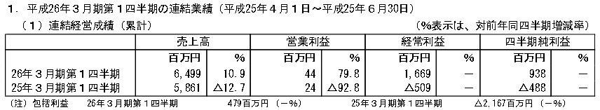 売上高 14億2百万円 セグメント利益 1億96百万円