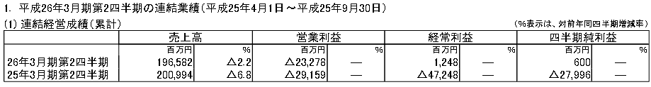 平成26年3月期 第2四半期決算短信〔日本基準〕(連結)