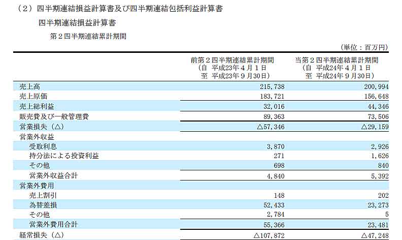 ざっと見る限りかなり改善しているように見えるが、今期は3DSが中心の売上なので国内>海外の結果に。