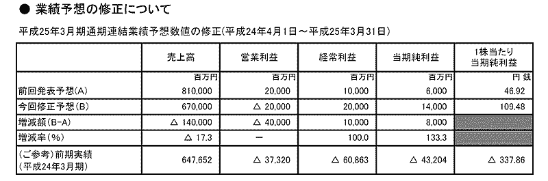 ▲1400億円の売上下方修正と純利益の上方修正