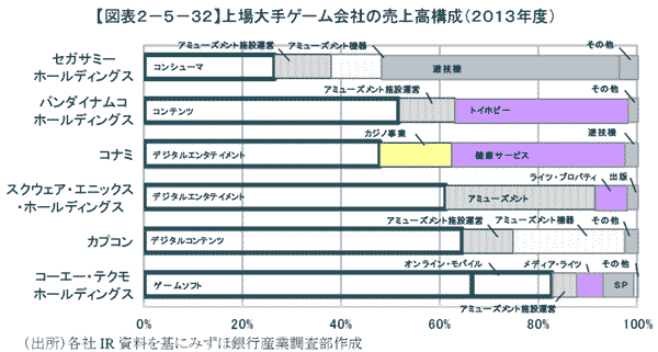 国内主要メーカーのゲーム売上比率