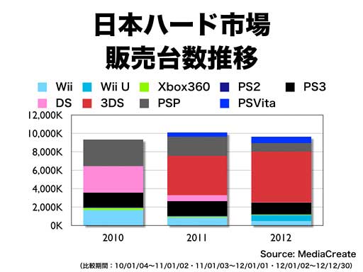 日本ハード市場推移 2010-2012年