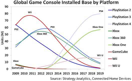 2018年にかけてXboxOneが5,700万台に比べてPS4は8,000万台のインストールベースになると予測