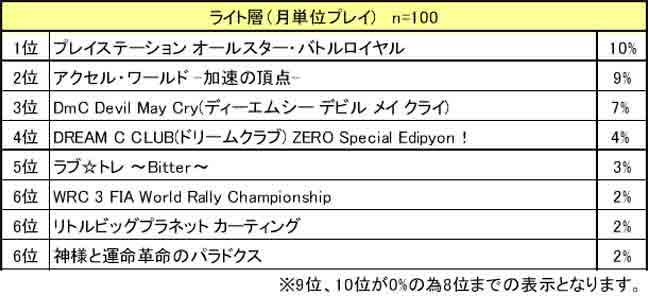 コア層以外は1位に「PSオールスターバトルロイヤル」を挙げています。