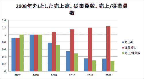 ※数字は2008年の売上/従業員比を1とした場合