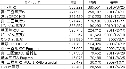 ※数字は週販 参考サイト 4gamer.netゲームソフト週間販売ランキング+