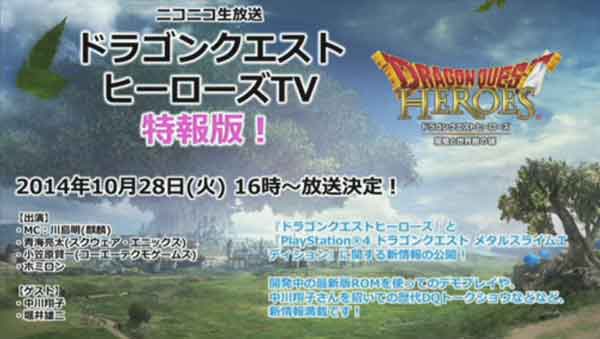 10月28日(火) 16時から「ドラゴンクエストヒーローズTV 特報版」が放送決定