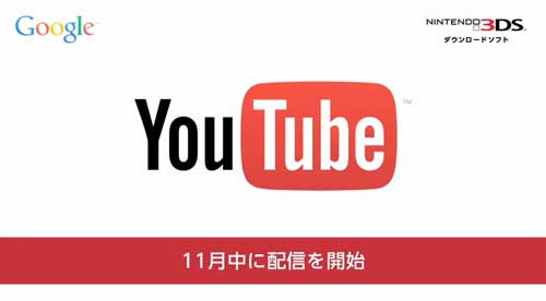 3DSでYouTubeが楽しめるアプリは11月中配信