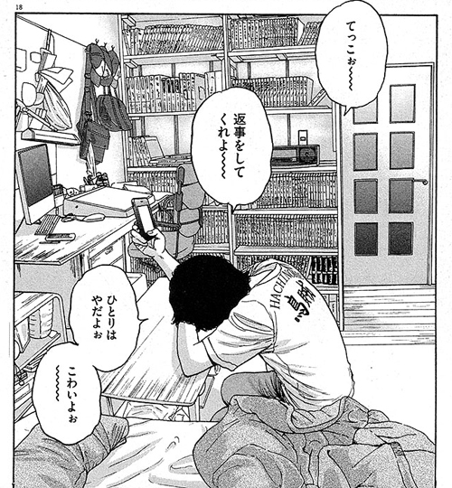 アシスタント先のスタジオでゾンビ化した同僚達に対峙するシーンがあり、生き残っていた同僚三谷の発言が重い。4ページ後に死んじゃいますけどね。