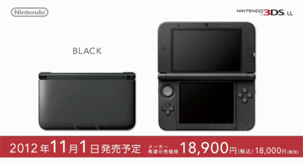 ▲まずは3DSLLの新色「ブラック」11月1日発売、価格は18,900円