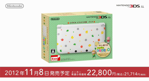 ▲ぶつ森ダウンロード版と同梱された3DSLL「とびだせどうぶつの森パック」