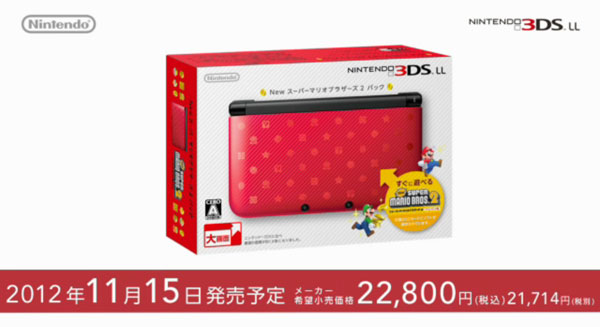 ▲newマリオ2同梱版3DSLL「newスーパーマリオブラザーズパック」