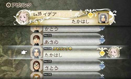 ともだちが育てたキャラクターのジョブアビリティを、自分のキャラクターで使用できるようになる機能。例えば、自分はナイトを育て、ともだちに白魔道士を育ててもらえば、2人ともレベルの高い白魔道士とナイトのアビリティを使うことができるようになる。アビリンクできるキャラクターは、ともだち1人につき1キャラまでなので、4人ともだちがいればパーティメンバー全員とアビリンク可能!