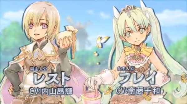 ▲主人公は男女から選ぶことができる。レスト(内山昂輝)、フレイ(斎藤千和)名前もデフォから変更が可能