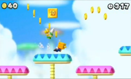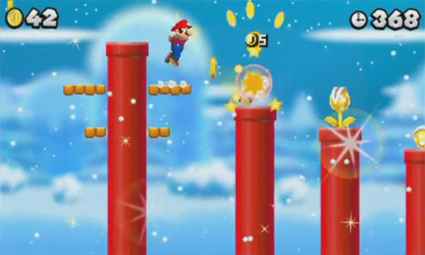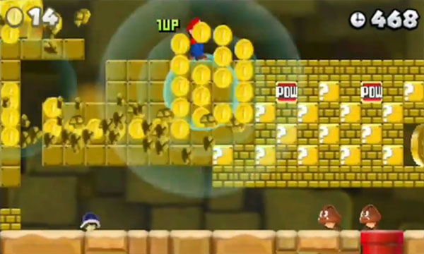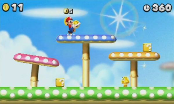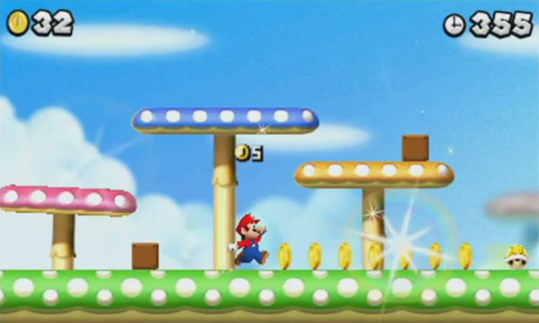 3DS版の2Dマリオが任天堂カンファレンスで発表された。 6/7:E3動画+社長が訊く追加 100万枚のコインを集めるマリオにする。