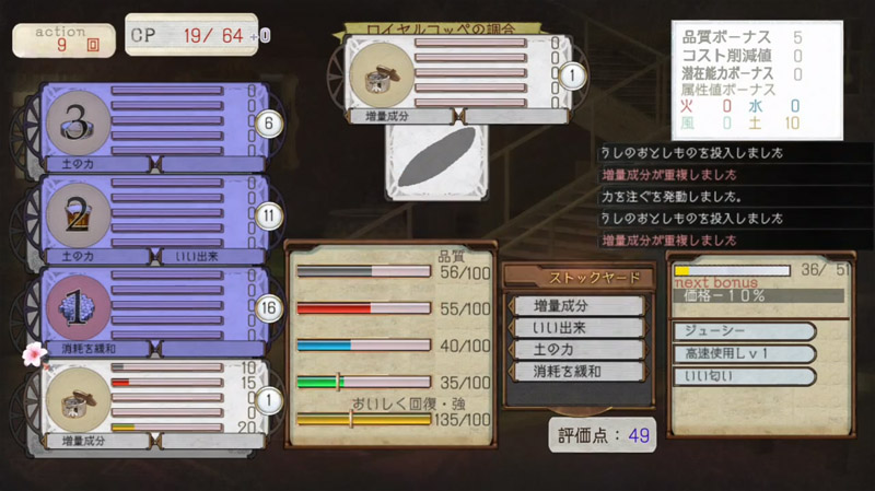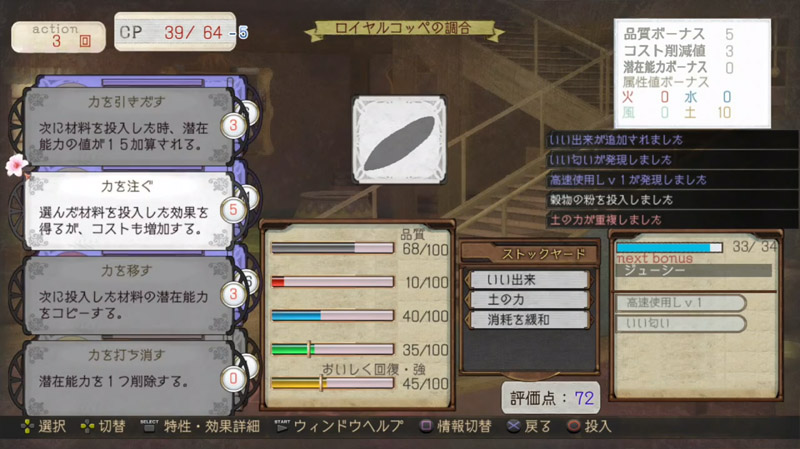 調合は一つのアイテムを作る時に順番にスキルと材料を足していく感じなのかな