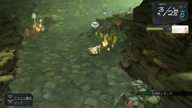 ▲【採取】調合を始めるためには、採取地で材料を手に入れる必要がある 。