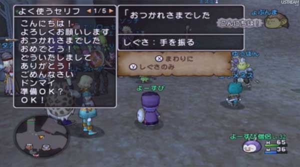▲ほかのプレイヤーとの交流は「よく使うセリフ」でコマンド選択が可能