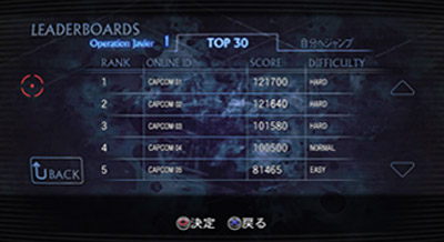 『バイオハザード/ダークサイド・クロニクルズ』で対応していたランキング機能が、今作では 『バイオハザード アンブレラ・クロニクルズ』にも実装!!