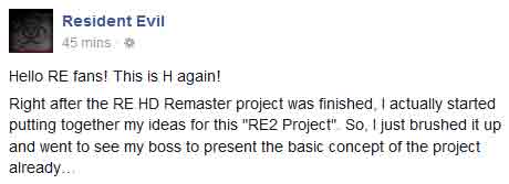 内容は“H”(平林良章氏)がこのバイオ2HDリメイクプロジェクトに関与しているというもの。
