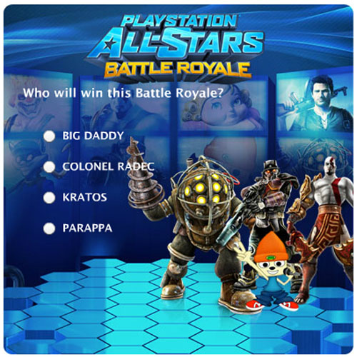 “誰がバトルロイアルで勝つと思う?”と題されたアンケートにはColonel Radec、クレイトス、パラッパを始めとする既に参戦が確定しているキャラクターに加え、『Bioshock』シリーズでお馴染みのビッグダディと、『アンチャーテッド』のネイサン・ドレイクの姿も確認する事が出来ます。
