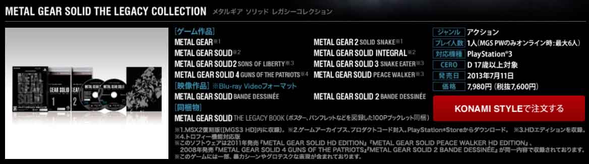 タイトル:METAL GEAR SOLID THE LEGACY COLLECTION