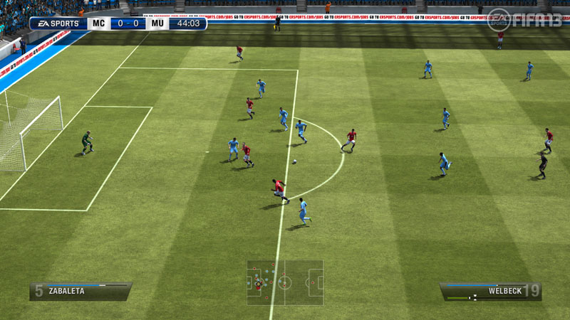 AIを作り直したことにより,攻撃時における自分が操作していない味方選手の動きが改善され,「相手ディフェンダーを引きつけてスペースを作る」「味方がパスを出しやすいポジションへ動く」といったことをより効率的に行えるようになった。具体的な例を挙げると,これまではディフェンダーの真後ろに空きスペースがあった場合,まずディフェンダーを避けることを優先し,空きスペースの右側か左側に走り抜けてしまっていたが,FIFA 13ではディフェンダーと至近距離ですれ違うようにして,ほぼ真っ直ぐに空きスペースへ走り込むことができるという。