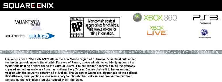 ダルマスカ王国の女王は、崩壊しそうな新たな同盟の名目上の長として、一人の傭兵を要塞に潜入させ、カルト集団がゲートの中に封印された禁術を使用することを阻止しなければならないと請願した。