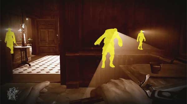 ▲物音も「ダークビジョン」で視覚化されるので物音の範囲が敵と接触しないように隠れる。