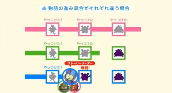 ▲ストーリーリーダーによって物語の進行具合は分かれます。倒した敵も、まだ倒していない仲間の世界では生きています。