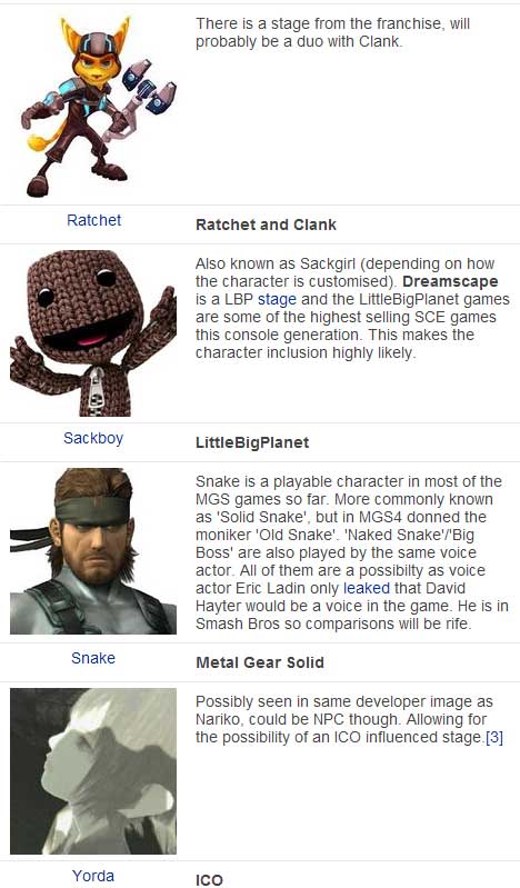 以下は公式発表の動画とそこからIGNが参戦を予想するキャラクター一覧です。