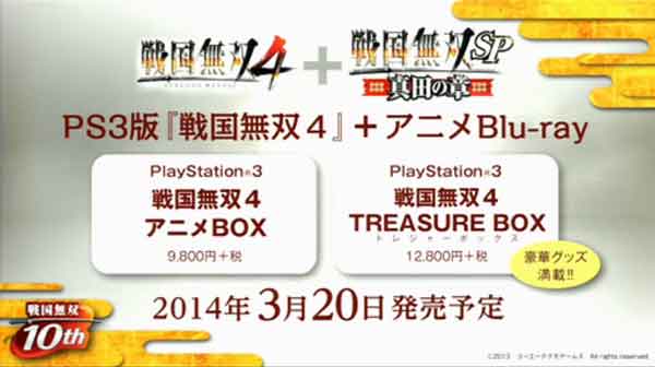 PS3「戦国無双4」とアニメBDが同梱されたアニメBOXが3月20日発売!