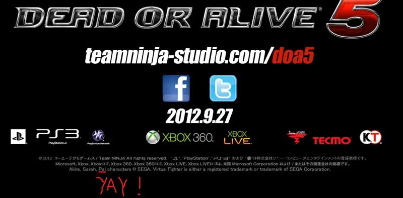 DOA5 こころ登場! さらにティナ、バーチャ・サラも参戦!! 発売は9月27日!!!