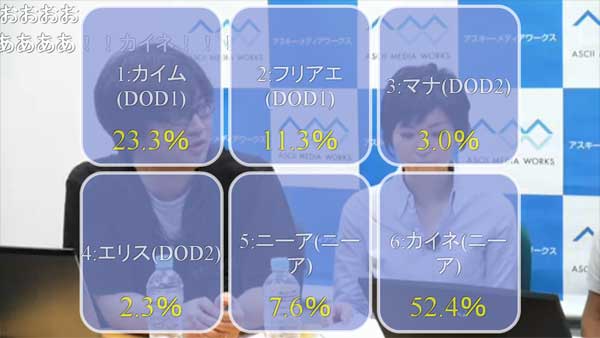 ▲カイネ(ニーアレプリカント)の意見が多数。まだ決定ではない模様