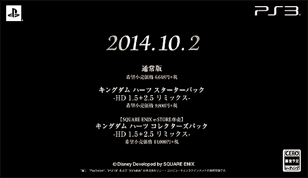 「キングダム ハーツ -HD 1.5 リミックス-」と「キングダム ハーツ -HD 2.5 リミックス-」のディスク2枚が特別仕様のパッケージに収められたスペシャルパックで、価格は9,800円(税抜)です。