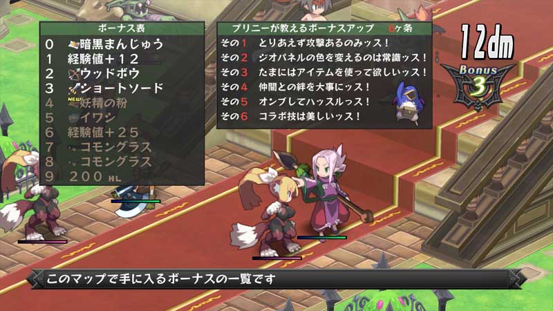 戦闘中、敵を攻撃したりアイテムを使用したりすると、その活躍具合によって、ボーナスゲージが溜まっていく。ランクに応じてアイテムや経験値などのボーナスが手に入る。