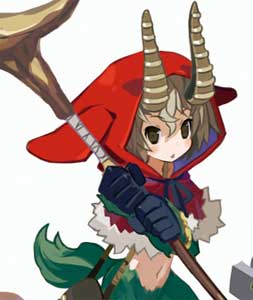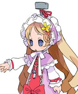 金髪を二つにまとめて斜め上に出している少女。とある魔女の下で修行中のトラブルメーカー、メタリカたちの周囲に出没する。声優不明。