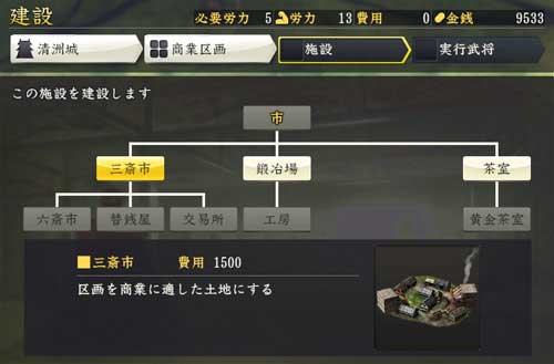 ▲商業区画の「市」を何に建て替えるのかを選ぶ