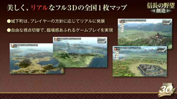 近接視点の合戦に、施設・街道などの箱庭内政、外交同盟の再評価、フリークエストによるイベント強化と従来のシリーズから大きく変化を遂げた「信長の野望」