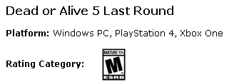 DOA5LRにPC版が発売か!? ESRBにWin版が登録!